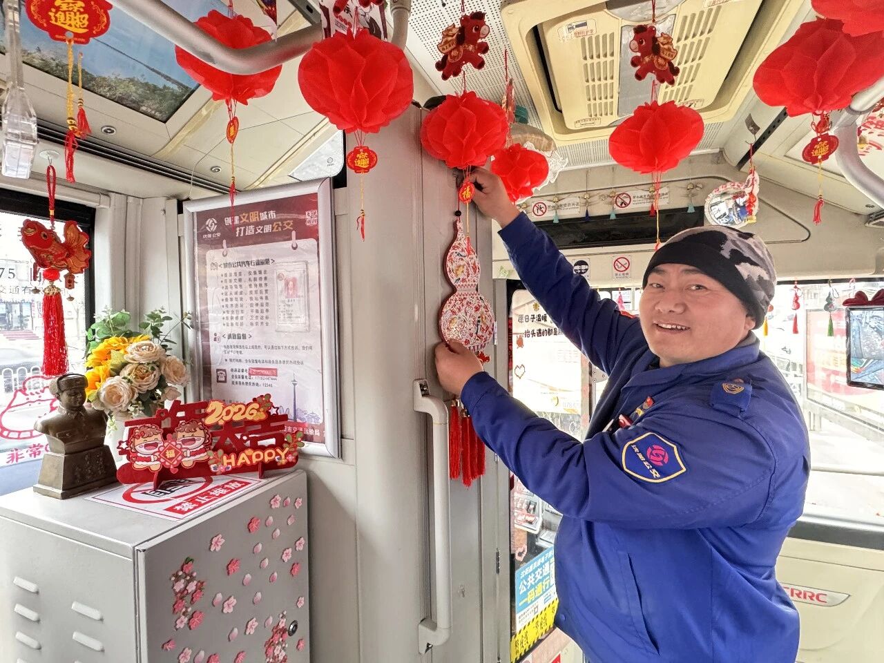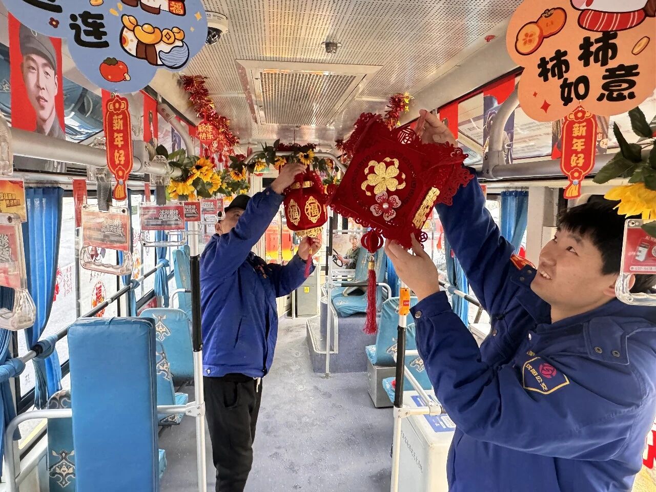 客運(yùn)集團(tuán)近期組織對(duì)所屬線路運(yùn)營車輛進(jìn)行徹底清掃與精心裝飾。車窗上貼起福字窗花,車廂內(nèi)懸掛起紅彤彤的小燈籠,扶手欄上點(diǎn)綴著新春飾物,一輛輛公交車煥然一新。整潔明亮的車廂與喜慶祥和的裝飾交相輝映,使乘客一上車便能沉浸于歡樂的節(jié)日氛圍之中,開啟一段充滿年味的行程。