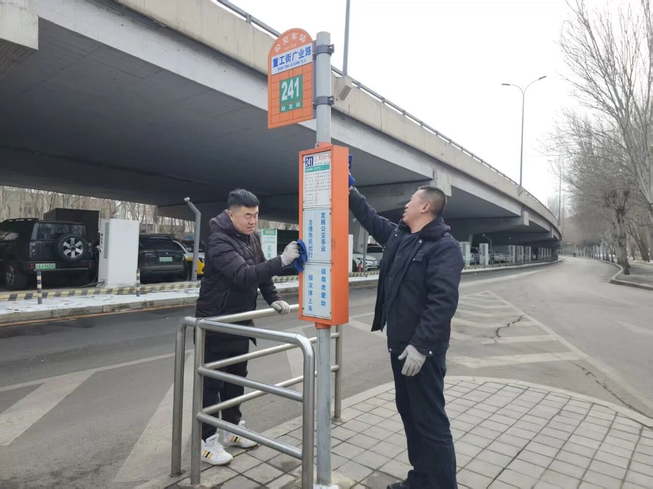 公交站臺(tái)不僅是市民出行的“避風(fēng)港”,更是展示城市文明的“第一窗口”?;顒?dòng)中,各支部志愿者們拿起掃帚、抹布、鏟刀等工具,深入車隊(duì)周邊站區(qū)開展清潔行動(dòng)。他們不放過任何一個(gè)細(xì)節(jié)——彎腰拾起嵌在地磚縫隙中的煙頭,踮腳擦拭候車亭上的積塵。經(jīng)過一番“地毯式”的清掃,候車亭煥然一新,為過往市民營造出干凈、舒心的候車環(huán)境,讓每一次等候都更有溫度。